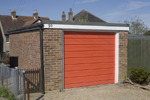 Garage with orange door